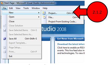 2.1.2 ที่ Menu bar เลือก File เลือก New เลือก Project