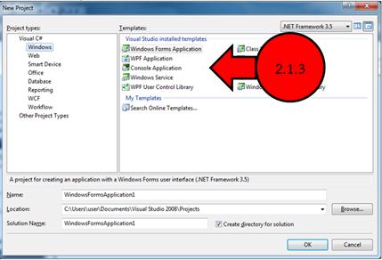 2.1.3 เลือก Console Applicaion และตั้งชื่อ Project และ เลือก Location สำหรับบันทึก Project