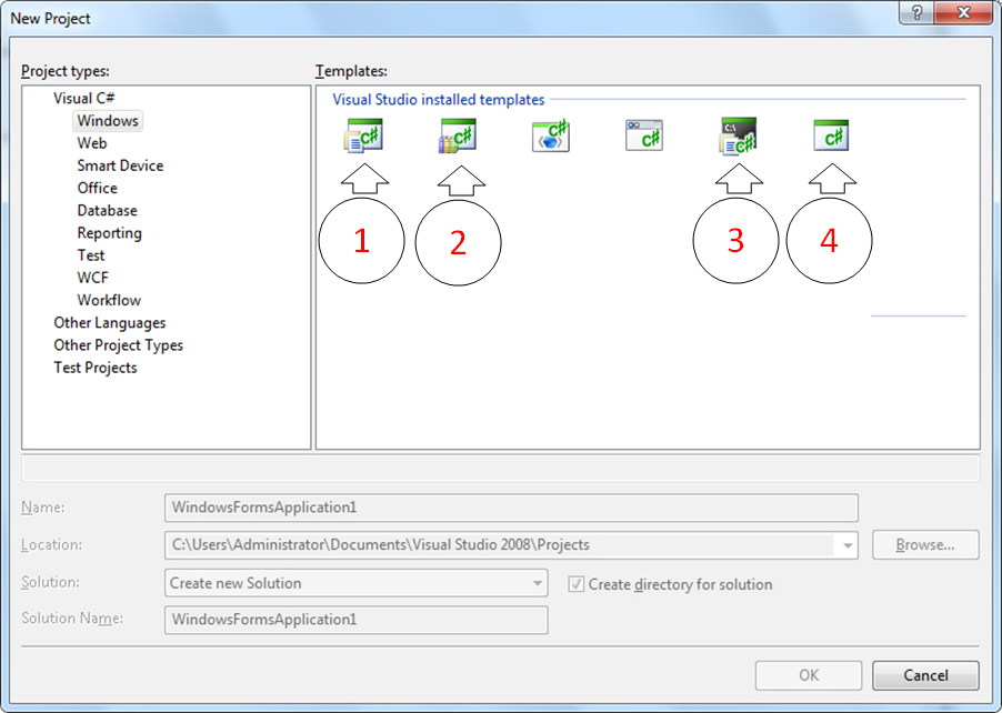 3. จากภาพหากต้องการสร้าง console application ต้องเลือกหมายเลขใด