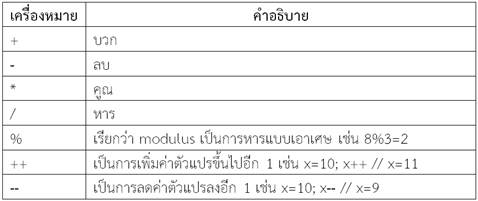 ตารางที่ 2.2 ตัวดำเนินการทางคณิตศาสตร์