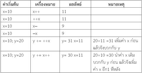 ตารางที่ 2.3 การใช้เครื่องหมาย ++ และ --