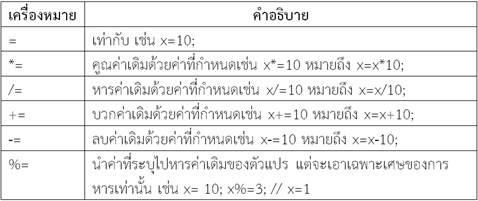 3.2 ตัวดำเนินการสำหรับการกำหนดค่า เป็นเครื่องหมายสำหรับกำหนดค่าของตัวแปรทางด้านซ้ายของเครื่องหมายด้วยค่าที่อยู่ทางด้านขวาของเครื่องหมาย