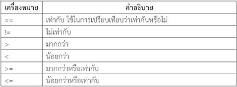 ตารางที่ 2.5 ตัวดำเนินการสำหรับการเปรียบเทียบ