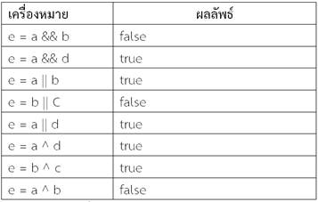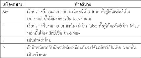 ตารางที่ 2.6 ตัวดำเนินการทางตรรกะ